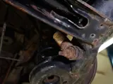 Når vi løfter bilen opp ser vi at det er mye salt. Heldigvis er det ikke mye rust, og antirustbehandlingen bilen fikk da den ble importert er heldivis fortsatt synlig. Den har gjort nytten sin, ingen tvil om det.